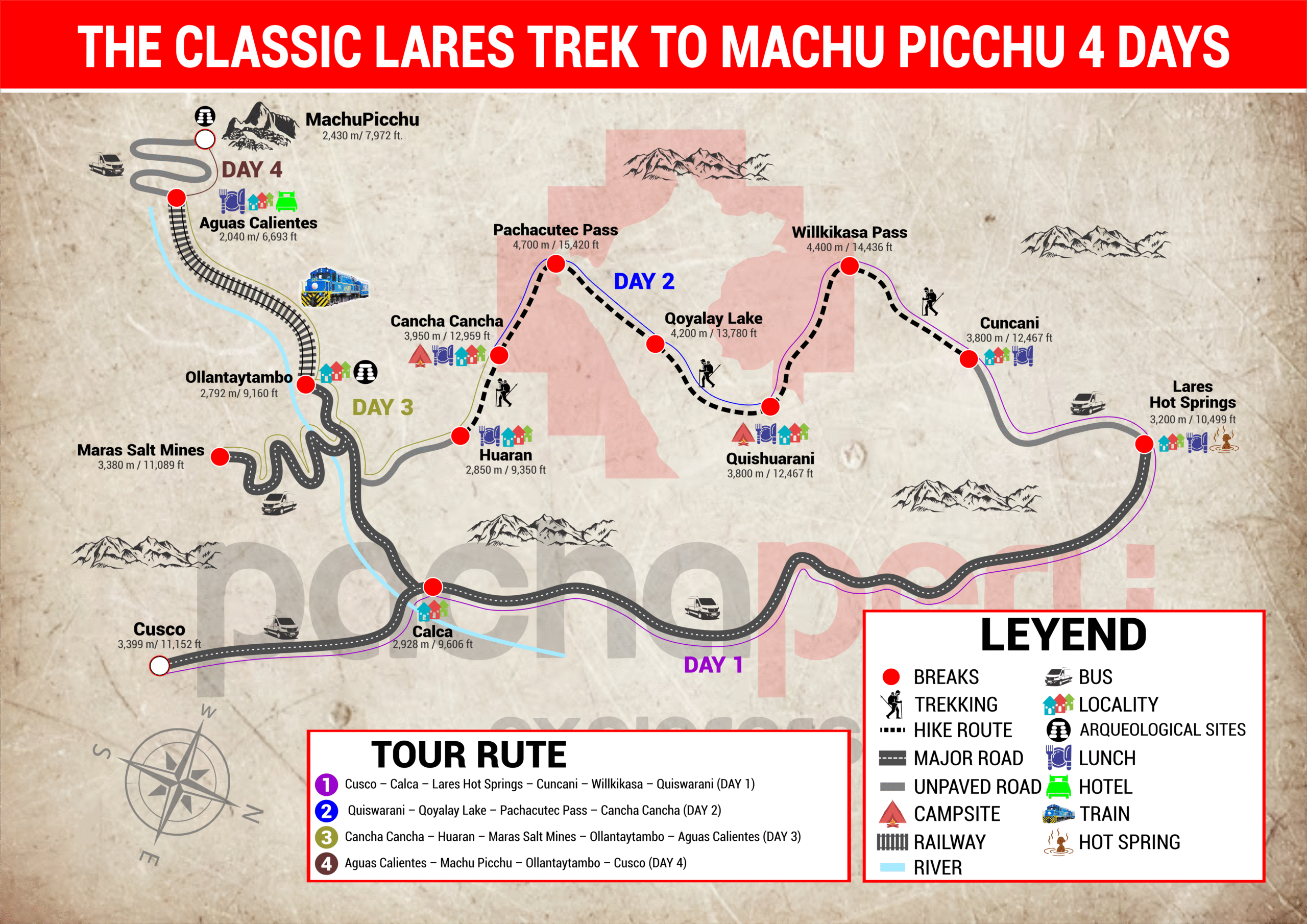 • Tickets: Machu Picchu uses timed entry and 3 official circuits (10 routes). Pacha Peru Explorers tries to offer the Machu Picchu entrance – circuit 2, the most complete. If availability is no longer available, tickets for circuit 1 or 3 will be provided. Therefore, we recommend booking your Lares tour as soon as possible to secure these tickets.