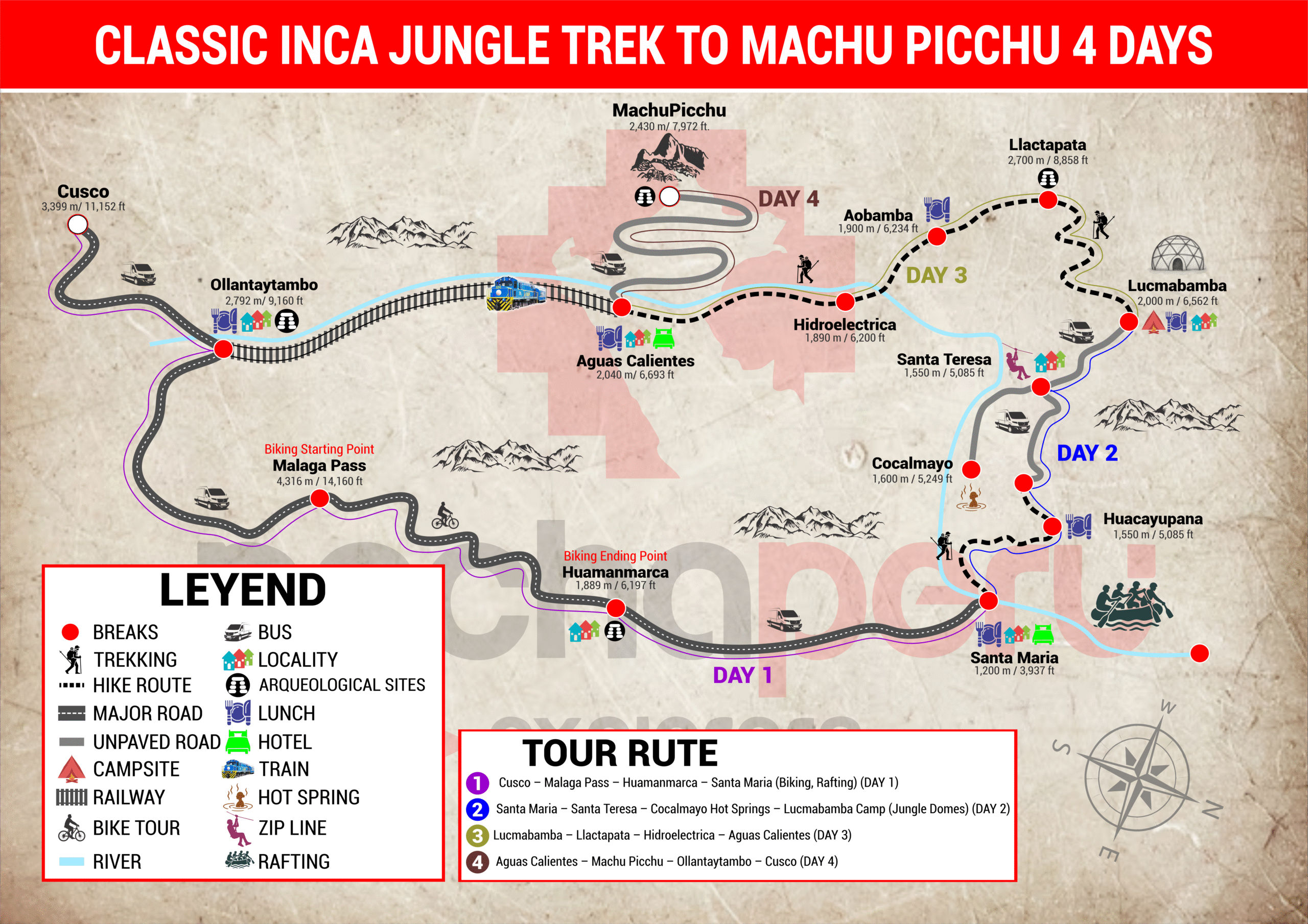DAY 1: Cusco | Malaga Pass – Huamanmarca – Santa Maria (Biking, Rafting)