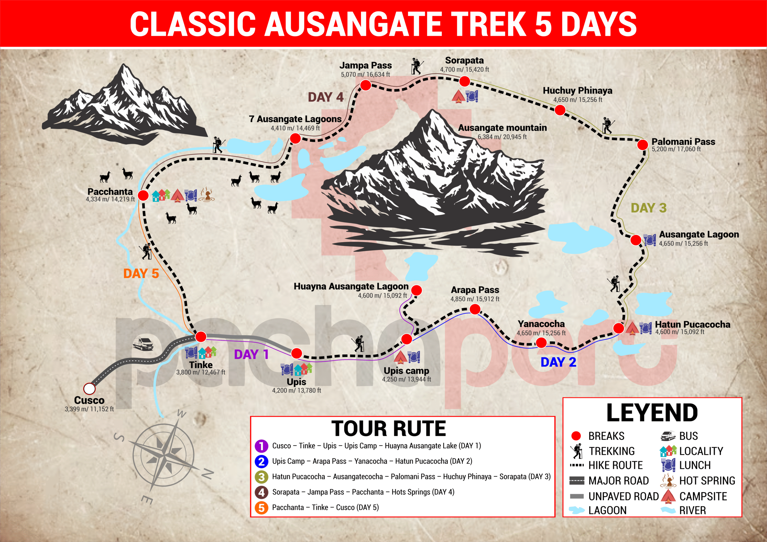 The Classic Ausangate Trek 5 Days is a beautiful and challenging trek in the Cusco region of Peru, and it is important to be prepared with the right gear. Here is a recommended packing list: