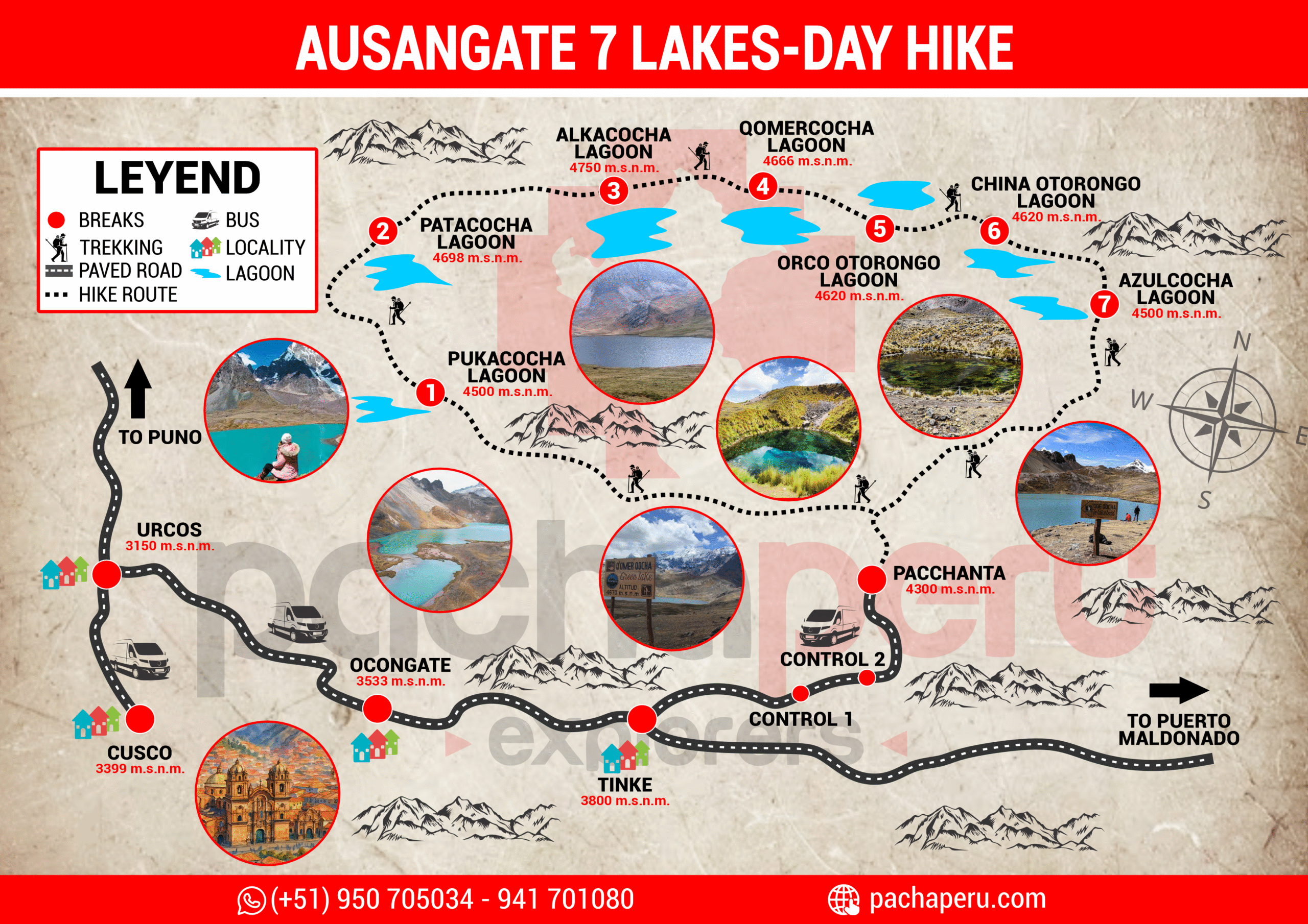 We’ll start with an uphill hike to the first lake of the circuit, known as Comercocha, a name originating from the Quechua language, which means “green lake.” Later, we’ll pass by other lakes: Patacocha, Azulcocha, and China Otorongo, among others. After a hike of about 15 km, we’ll return to the community of Pacchanta to have lunch. If the body asks for it, you can take a relaxing dip in the hot springs before returning to Cusco, finishing this incomparable experience.