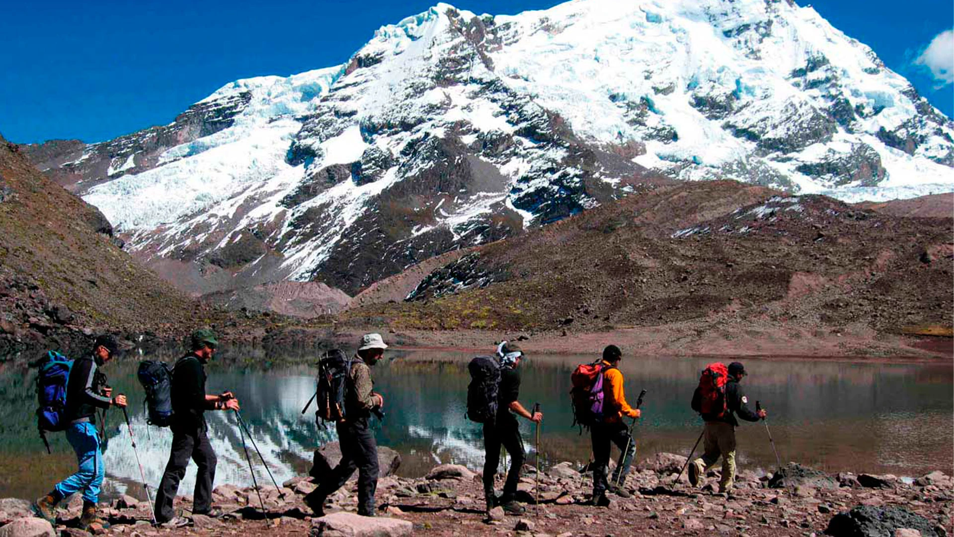 Next, we’ll go uphill for about three and a half hours to the viewpoint of Ninaparayoc. Along the way, we’ll pass by Comercocha and Alqacocha, lakes of blue and turquoise waters located at the foot of the enigmatic glacier of Callangate. Later, we’ll return to Pacchanta and, on the trail, visit the lakes of Patacocha, Otorongococha, Azulcocha, and others.