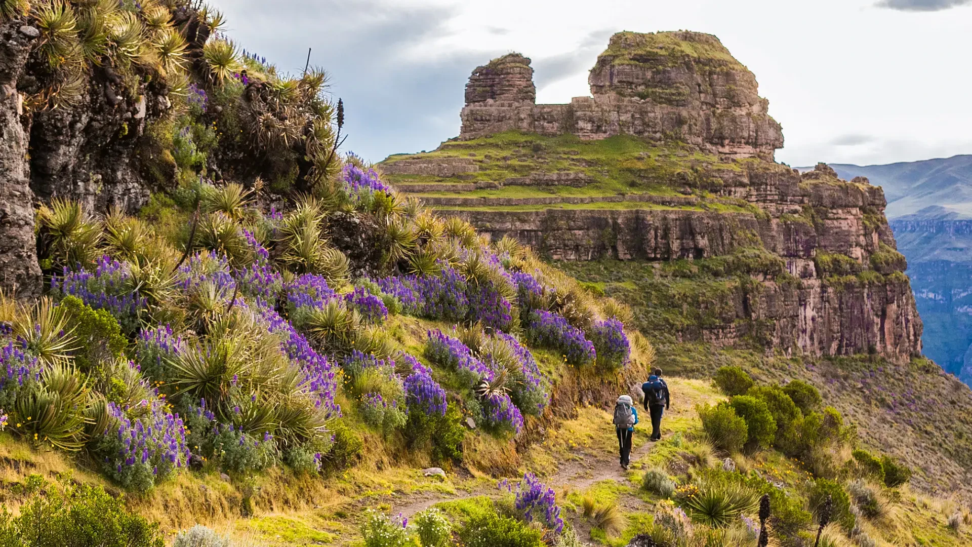 Join us on an epic hike to the majestic pre-Inca construction of Waqrapukara, or Fortress of Horns, located in the mighty Apurímac Canyon. This beautiful sacred place combines advanced architecture and impressive natural formations in a wonderful landscape—almost like something from a dream—surrounded by small crystalline lagoons. The gigantic horns rise as high as 4,140 m / 13,583 ft.