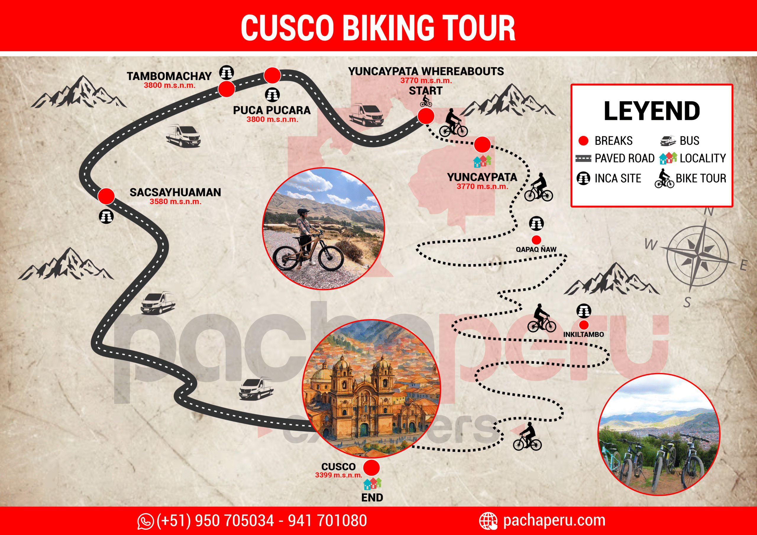 Live an exciting biking experience in Cusco with our tour to Yuncaypata! Enjoy routes designed for all levels: basic, intermediate, and advanced, crossing trails, wide paths, and technical sections. Discover natural landscapes, panoramic viewpoints, rarely visited Inca ruins, and modern Cusco. An experience that combines adventure, culture, and sport in a unique route.